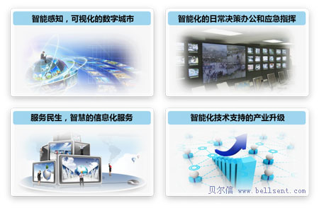 贝尔信构建的智慧城市体系可以概括为一句话:“以VIDC为基础,实现智能感知、互联互通、协调共享和城市运营”,简称“智慧城市4+1体系”。